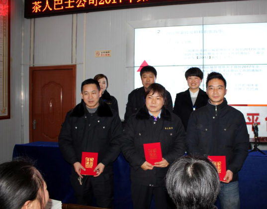 代永莉经理并宣读了《贵州宏懋晨集团湄潭茶人巴士有限公司关于表彰2016年度先进集体及先进个人的决定》,并亲自为获得2016年度先进集体的2大队颁发证书和奖金;副经理张海华、党支部书记李明嫦为3名先进个人、3名节油标兵和公司33名安全生产先进个人颁发了证书和奖金。