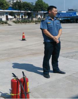 周建军做消防器材使用现场讲解 演练现场