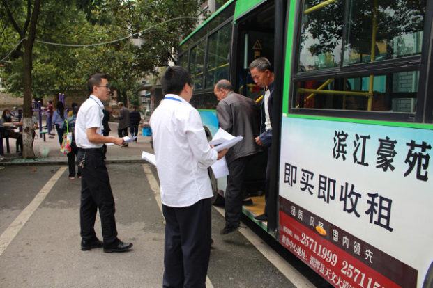 活动当天,县运管所王昌洪副所长和湄潭茶人巴士公司的志愿者们分别到浙大广场和阳光水岸公交车发车点向市民发放“优选公交绿色出行倡导书”,倡导绿色出行。活动期间,公司还通过悬挂横幅标语、车头横幅、车载视频等方式向市民进行广泛宣传。