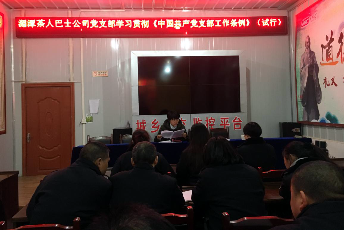 12月28日下午,湄潭茶人巴士公司党支部组织召开专题会议,会议由党支部书记代永莉主持。会议传达落实省委组织部<关于认真学习贯彻《中国共产党支部工作条例(试行)》的通知>精神,研究部署学习贯彻《中国共产党支部工作条例(试行)》各项要求。